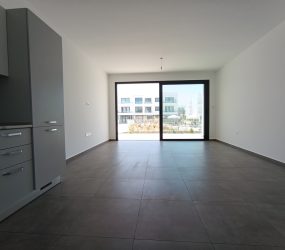 Situated on the first floor, the 75 m² apartment includes an open-plan kitchen with built-in appliances, a modern bathroom, and is equipped with thermal and sound insulation for year-round comfort.